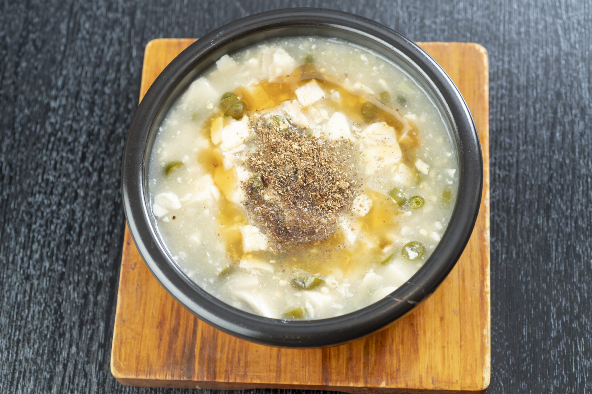 御茶ノ水駅・新御茶ノ水駅・末広町駅から各徒歩5分。本場四川の香辛料を駆使し、麻・辣・酸・甘・苦の「五味一体」を追求した麻婆豆腐専門酒家です。基本の辛さから超地獄、お子様向けまで細かく選べる麻婆豆腐は20種類以上。燻製や白子、チーズなど独創的な一皿も揃えました。モダンで落ち着いた店内には、調理の臨場感を楽しめるカウンター席と、ゆったり寛げるテーブル席をご用意。仕事帰りの一杯から、大切な方との食事まで。香り高い麻婆豆腐と美酒を、洗練された空間で心ゆくまでお楽しみください。
