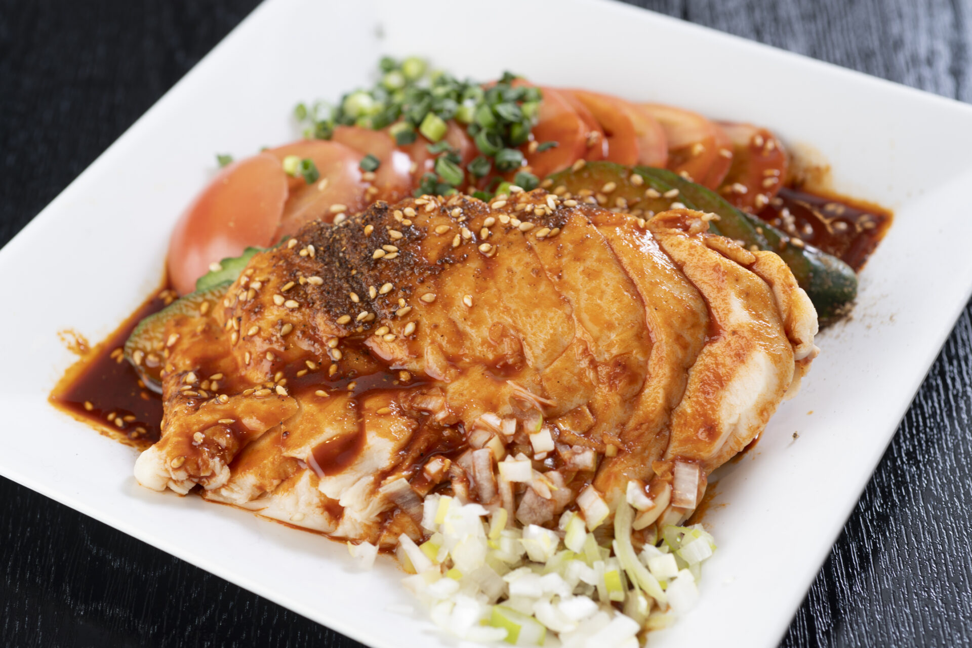 | 蒸し鶏とフルーツトマトの椒麻ソース | 1,375円 |