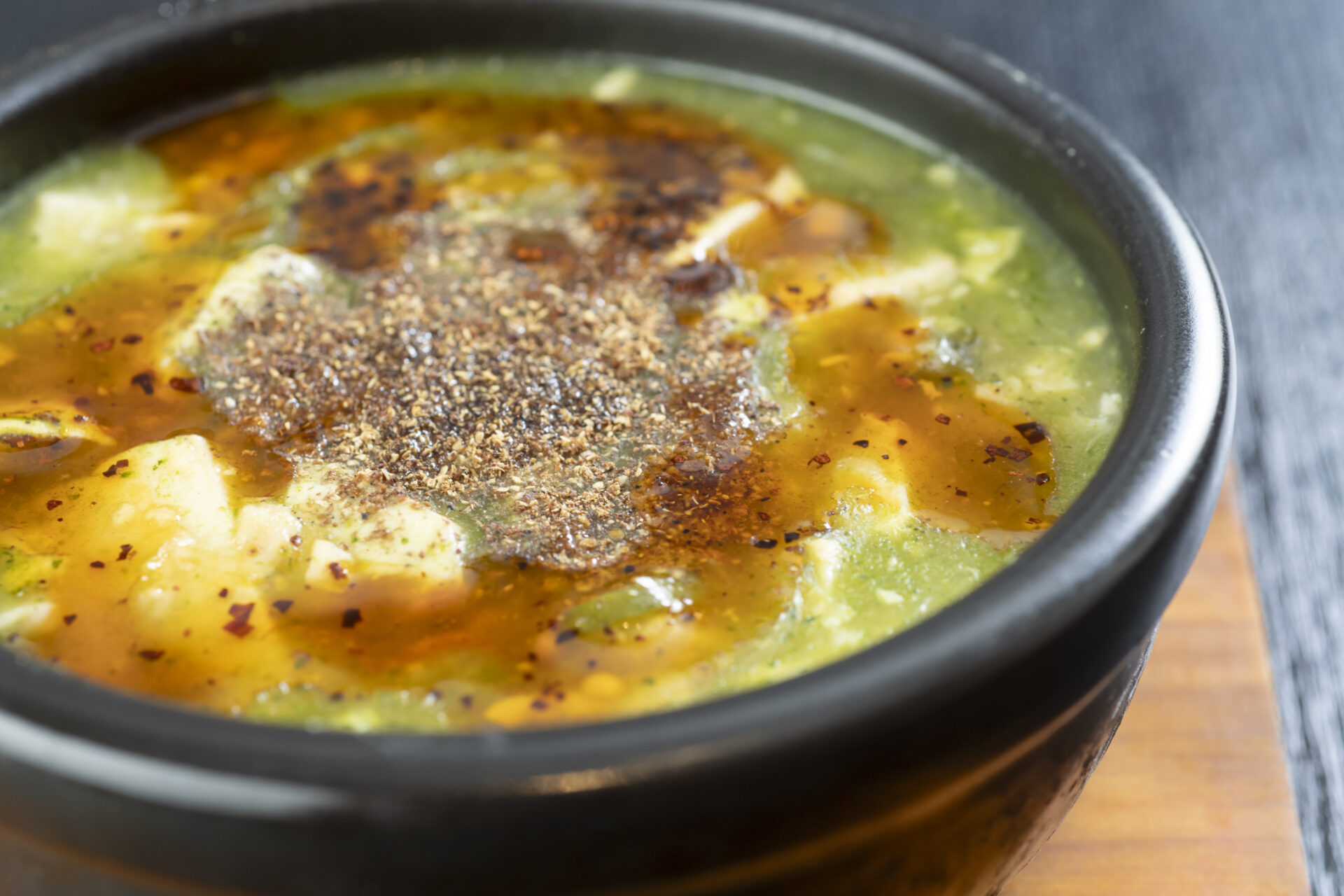 『五味一体』を追求した麻婆豆腐専門店!辛さはやさしめから超激辛まで自由に選べ、燻製・白子・チーズなど遊び心あふれる麻婆豆腐は20種類以上。香りと旨さに本気で、本格四川の棒棒鶏や焼売、水餃子、黒酢仕立ての油淋鶏や酢豚など定番中華も勢ぞろい。気軽に中華の奥深さを楽しめます。