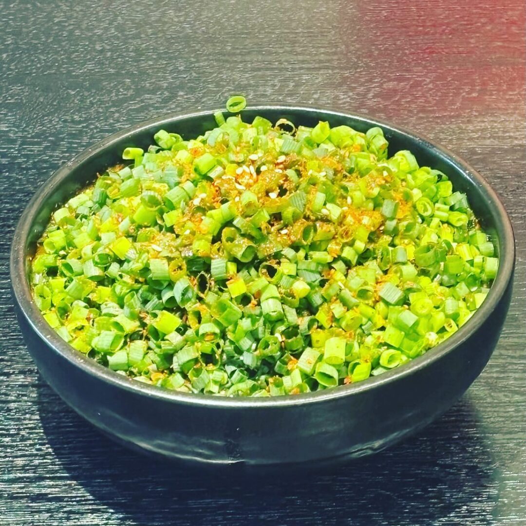 麻婆豆腐が見えなくなるまでたっぷりと青ネギを乗せました。葱油と胡麻で香りもプラス。